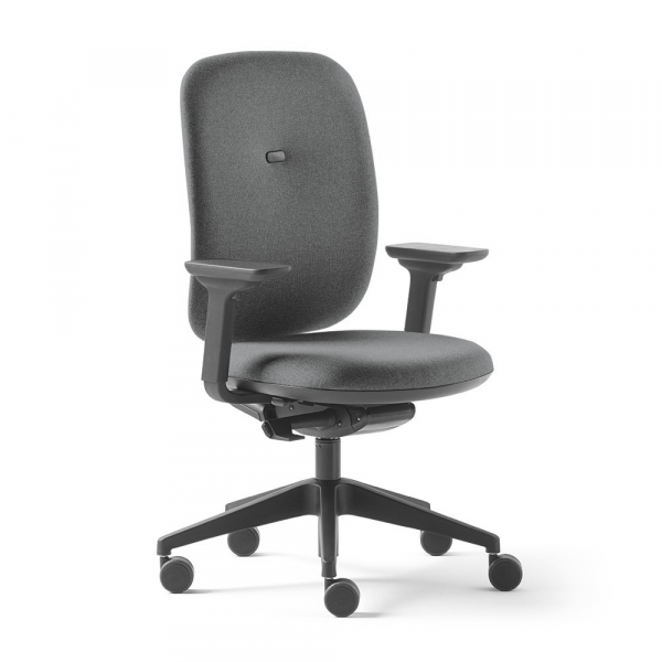 Bureaustoel BA160 met vriendelijke en huiselijke ronde vormen. Leuk detail vormt het gecapitonneerde deel in de rug. Comfortabele uitvoering, met hoogte verstelbare armleuningen.