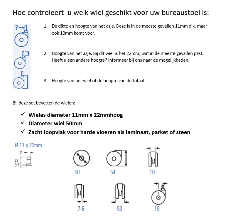 U bevindt zich hier: Home1 / Winkel2 / Accessoires3 / Wielen4 / C511 bureaustoelwieltjes, zacht, ⌀ 5cm, pin 11mm, set van 5 stuks gere...