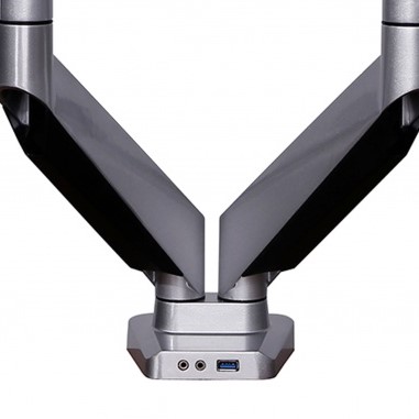 Naast de ergonomische voordelen heeft de arm ook een aantal praktische features. Zo zitten in het voetstuk van de arm een audio- en een USB-aansluiting. Zo kunt u bijvoorbeeld altijd uw telefoon opladen. De schermen aan de arm kunnen 360 graden draaien en door de gasveer is het beeldscherm eenvoudig en traploos instelbaar.