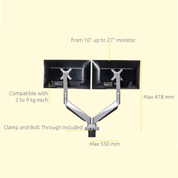 Deze uitvoering heeft twee armen waaraan twee monitoren geplaatst kunnen worden.
