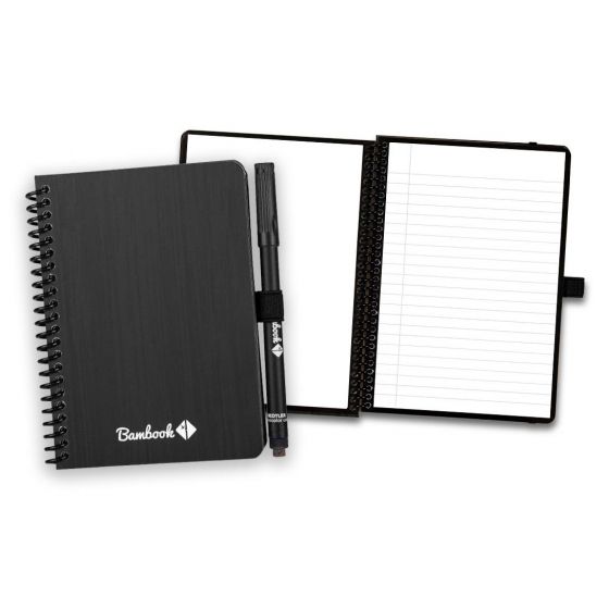 De A6 uitwisbare softcover Bambook heeft een kartonnen (FSC) omslag en is voorzien van een elastiek om je notitieboek goed dicht te houden. Het notitieboek bestaat uit 20 blanco pagina’s afgewisseld met 20 gelinieerde pagina’s. Wordt geleverd inclusief de speciale uitwisbare stift met wis gum. Op elk boek staat een Nederlandstalige uitleg en verwijzing naar de speciale app om je documenten direct te bewaren of te versturen. Per verkocht boek wordt er1 boom geplant op Madagaskar i.s.m. Eden Projects! De boeken worden in Nederland gemaakt, op een sociale werkplaats.